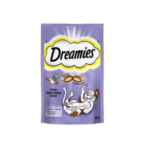 Dreamies Ördekli Kedi Ödülü 60 Gr, alışılmış lezzetlerden sıkılan kediler için ördek etinin çekici aromasını sunan, dışı kıtır içi kremamsı muhteşem bir kedi atıştırmalığıdır.