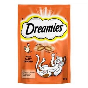 Dünyada en çok satılan çeşitlerden biri. Dreamies Tavuklu, protein kaynağı tavuk etiyle kedilerin doğal beslenme içgüdülerine hitap eder.