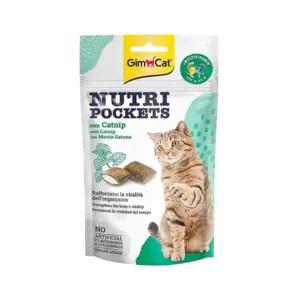 GimCat Nutri Pockets Kedi Otlu Kedi Ödülü 60 Gr, dışı gevrek, içi yumuşacık kedi otu (catnip) dolgusuyla hazırlanan, midedeki tüy yumaklarının atılımını kolaylaştıran leziz ve işlevsel bir ödüldür.
