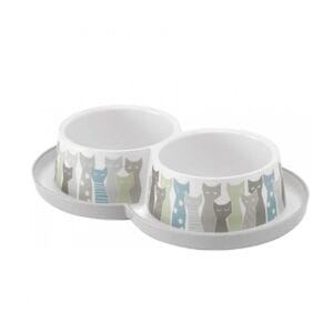 Mama ve su yan yana, düzenli sofralar. Moderna Trendy İkili Kap, sevimli dostların desenleriyle süslenmiş, devrilmesi zor bir tasarıma sahiptir.