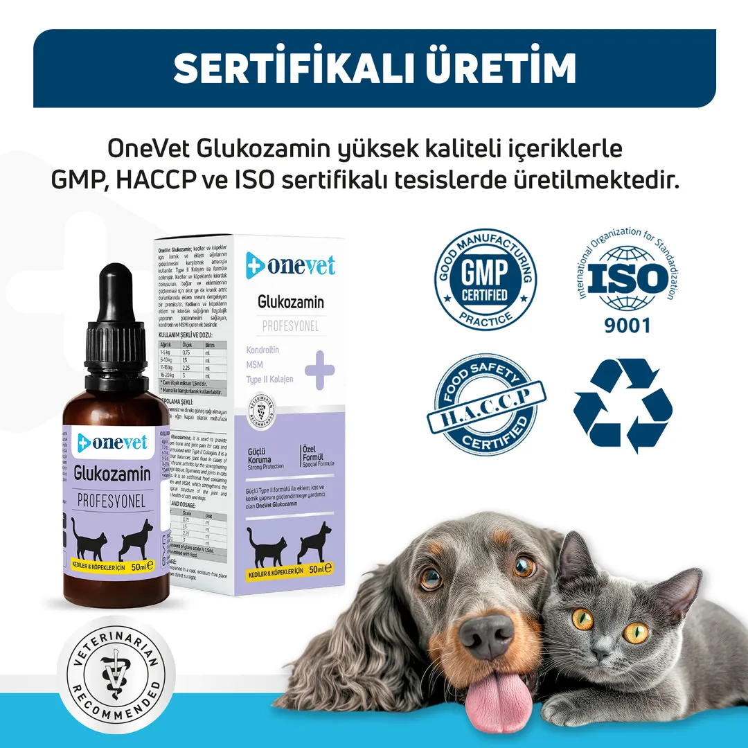 OneVet Glukozamin Kedi ve Köpekler İçin Eklem & Kas & Kıkırdak Sağlığı Destekleyici Damla