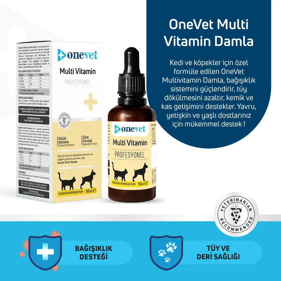 OneVet Multi Vitamin Kedi ve Köpekler İçin Gelişim ve Bağışıklık Destekleyici Damla