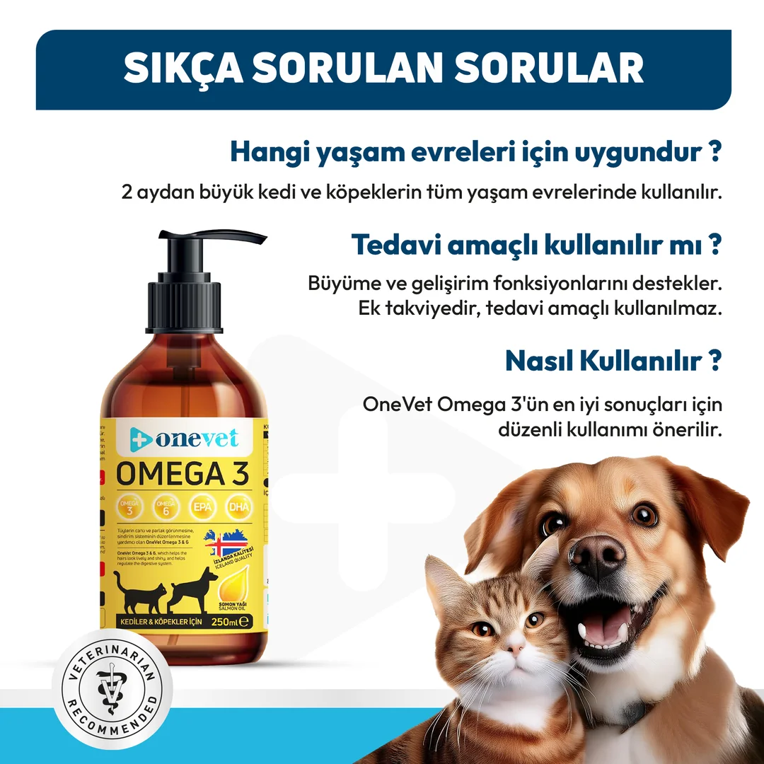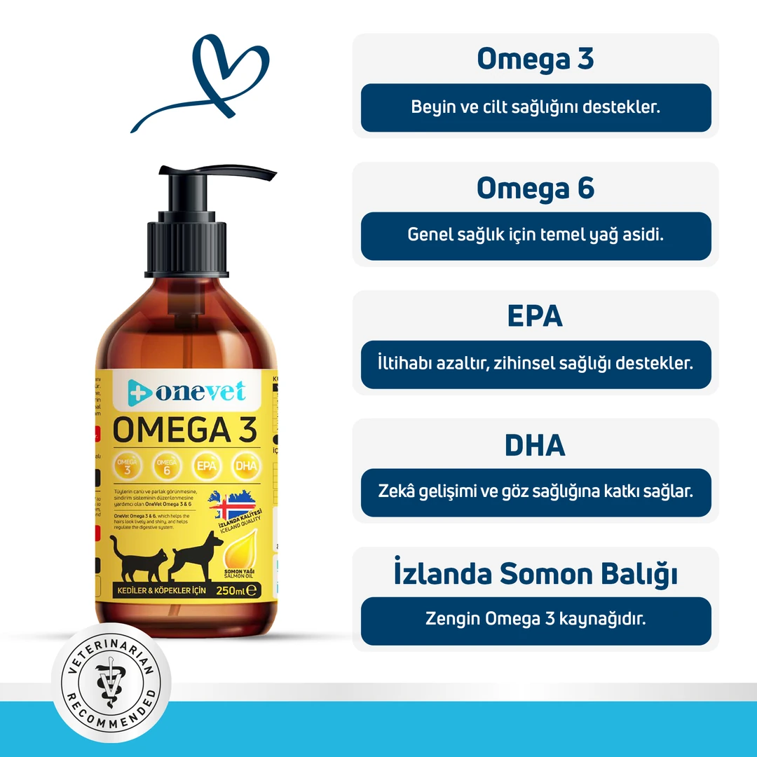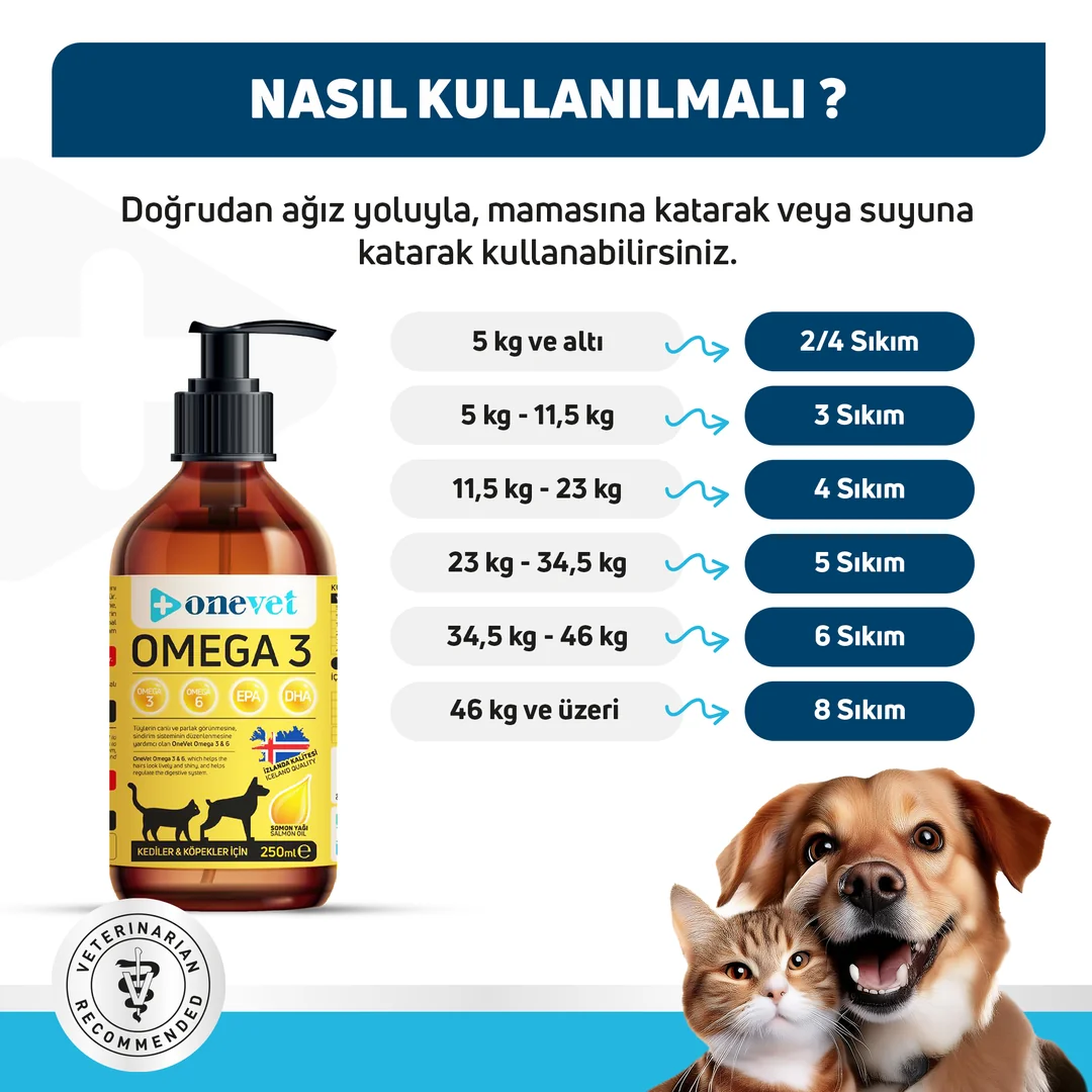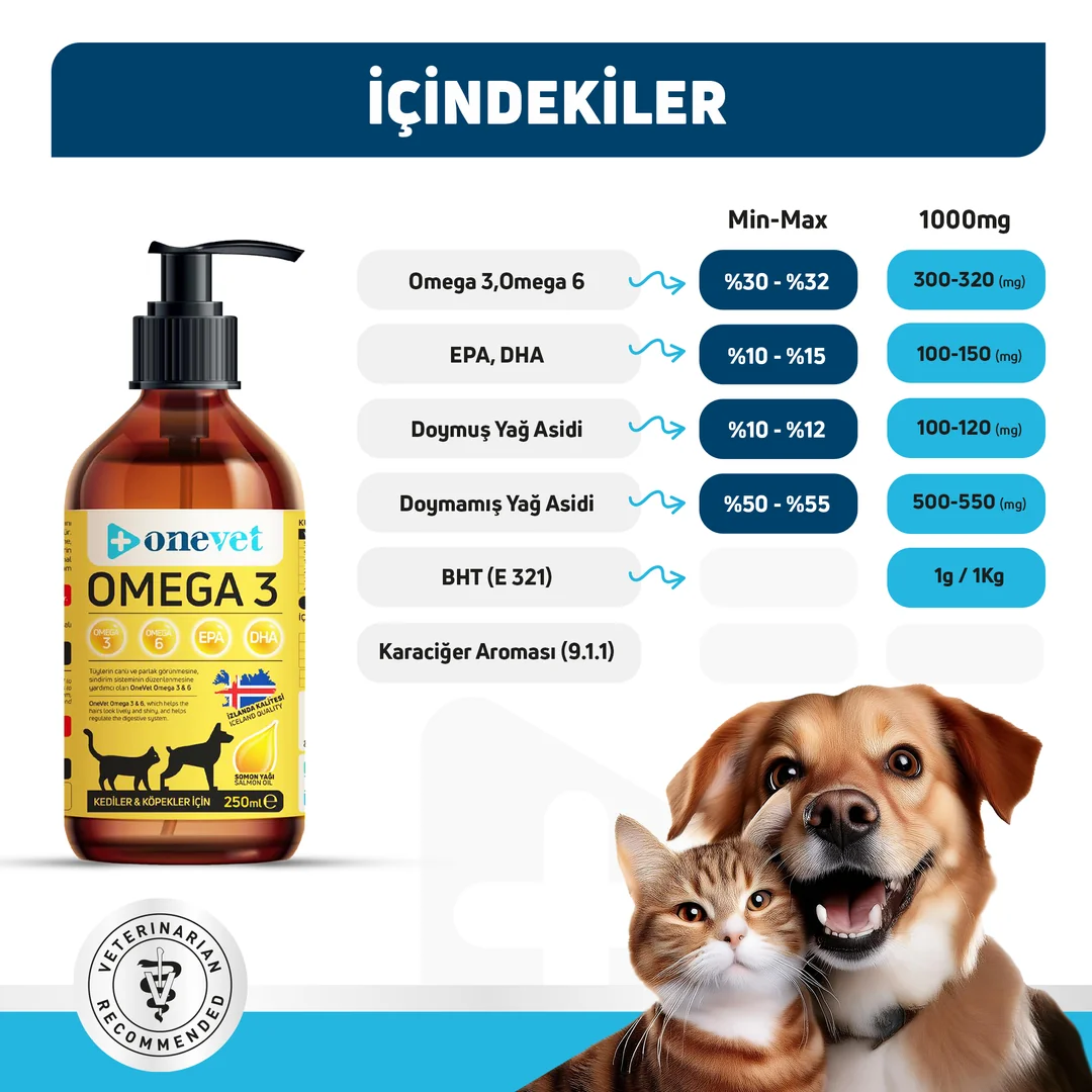 OneVet Omega 3 Kedi ve Köpekler İçin Deri & Tüy Sağlığı Destekleyici Balık Yağı
