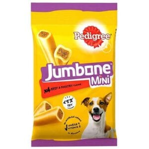 Küçük köpeğinizin de kemik kemirmeye hakkı var! Pedigree Jumbone Mini, küçük ırk köpeklerin çene yapısına uygun olarak tasarlanmış, gerçek kemikten çok daha güvenli bir alternatiftir.