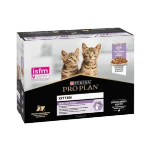 Purina Pro Plan Hindili Yavru Kedi Maması 10 x 85 Gr, veteriner hekimlerin tercihi Pro Plan kalitesini, nefis hindi eti parçalarıyla pratik porsiyonluk yaş mama paketlerinde sunar.