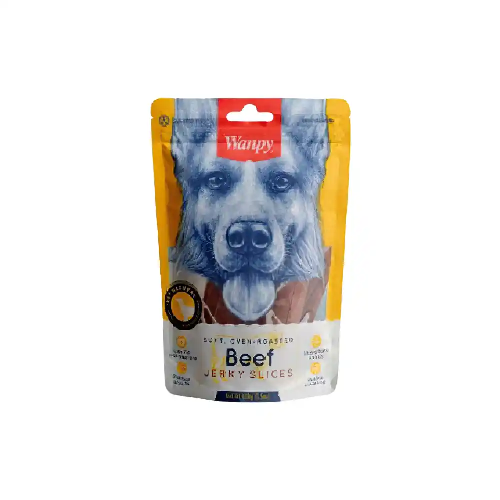 Wanpy Biftekli Jerky Parçaları Köpek Ödül Maması 100 Gr, saf sığır etinin kurutulmasıyla (jerky) elde edilen, köpeklerin vahşi doğasına hitap eden yüksek proteinli ve efsane kokulu bir performans ödülüdür.